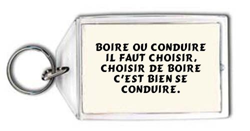 Boire ou conduire il faut choisir, choisir de boire c'est bien se conduire. Porte Clé