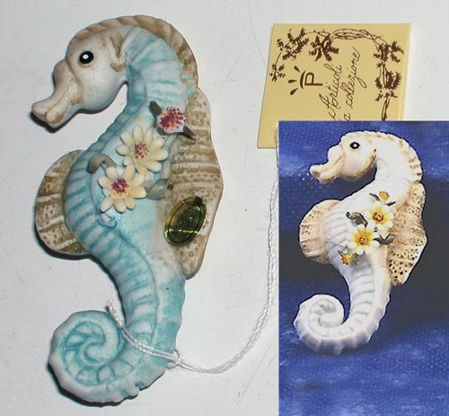 Bomboniere - Faveurs idée: hippocampe hippocampe fleurs en porcelaine bleue. 8cm Hauteur