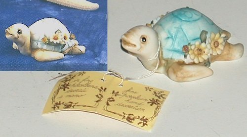 Bomboniere - Faveurs Idée: tortue en porcelaine bleu avec des fleurs. Hauteur 7cm