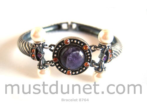 Bracelet Perle Mauves Et Petites Perkles Blanches Metal Vieilli 8764