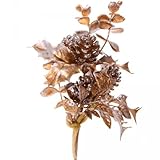 Branche de Noël avec des pommes de pin et Ilex, 22 cm x 10 cm - Argenté/Or