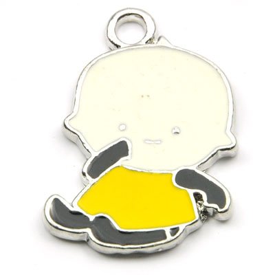 Breloque bébé métal émaillé blanc jaune 25 mm
