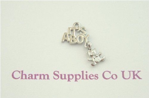 Breloque Charm "It's a Boy" (C'est un Garçon) avec Nounours - Naissance - Argenté